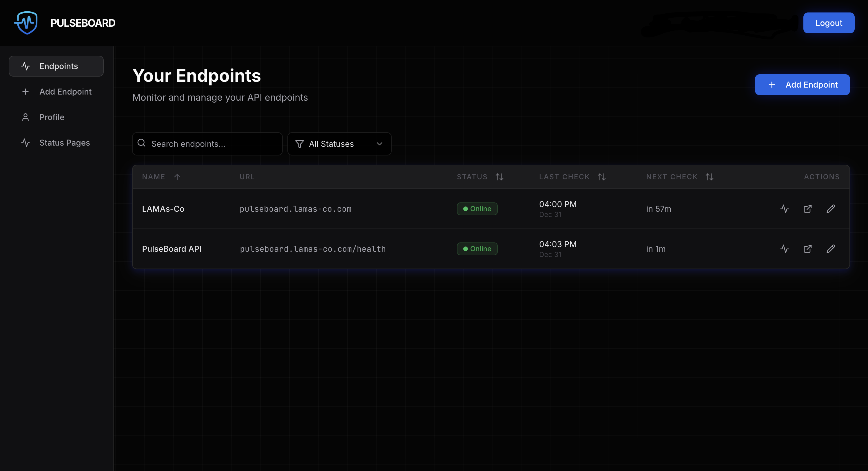 Welcome to the PulseBoard documentation. Learn how to monitor your endpoints, configure alerts, and manage status pages efficiently.
